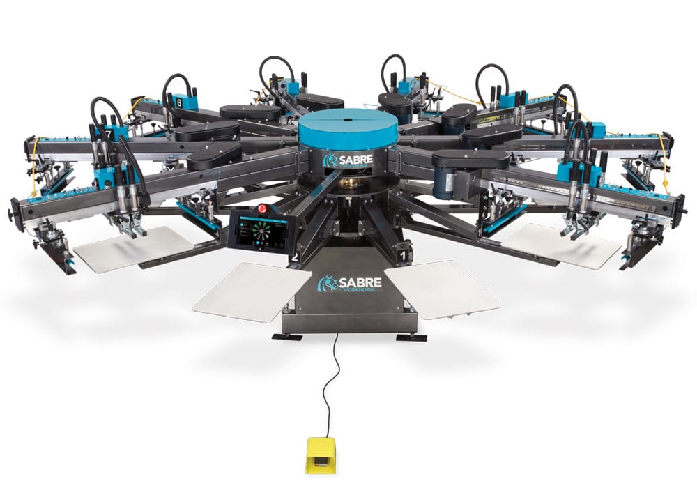 - The Workhorse Sabre 12/14 is an automatic screen printing press with a standard print area of 20" x 28" and an overall diameter of 18' (5.5 m).